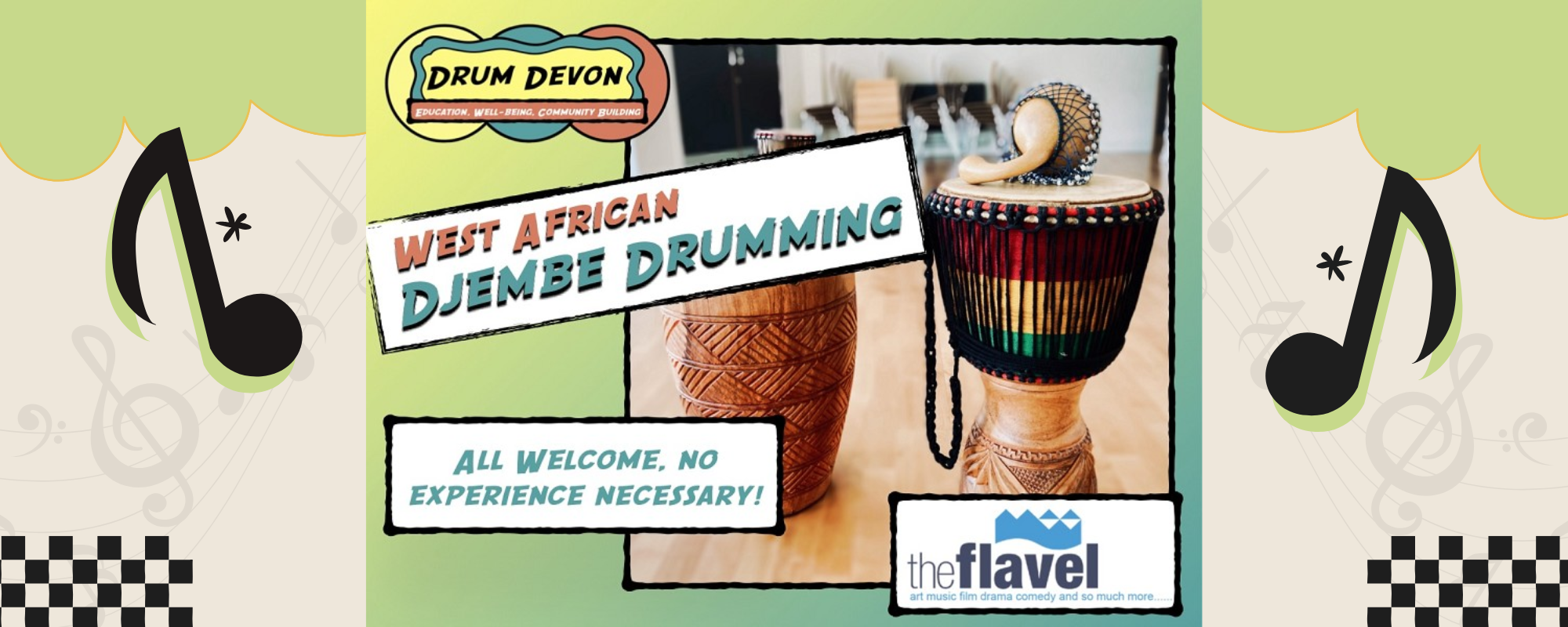 Come and learn to play a traditional West African Djembe rhythm – No experience necessary!